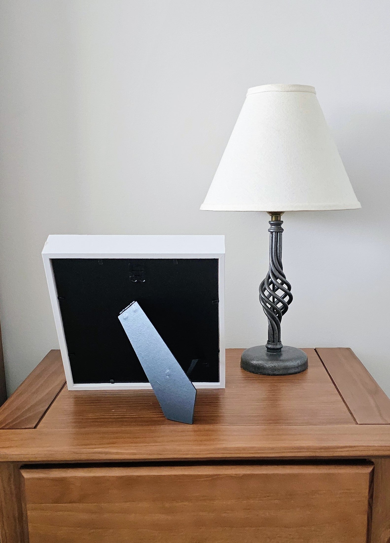 Actual artwork 7.5x7.5 in a 8.5x8.5 unmatted white wooden frame