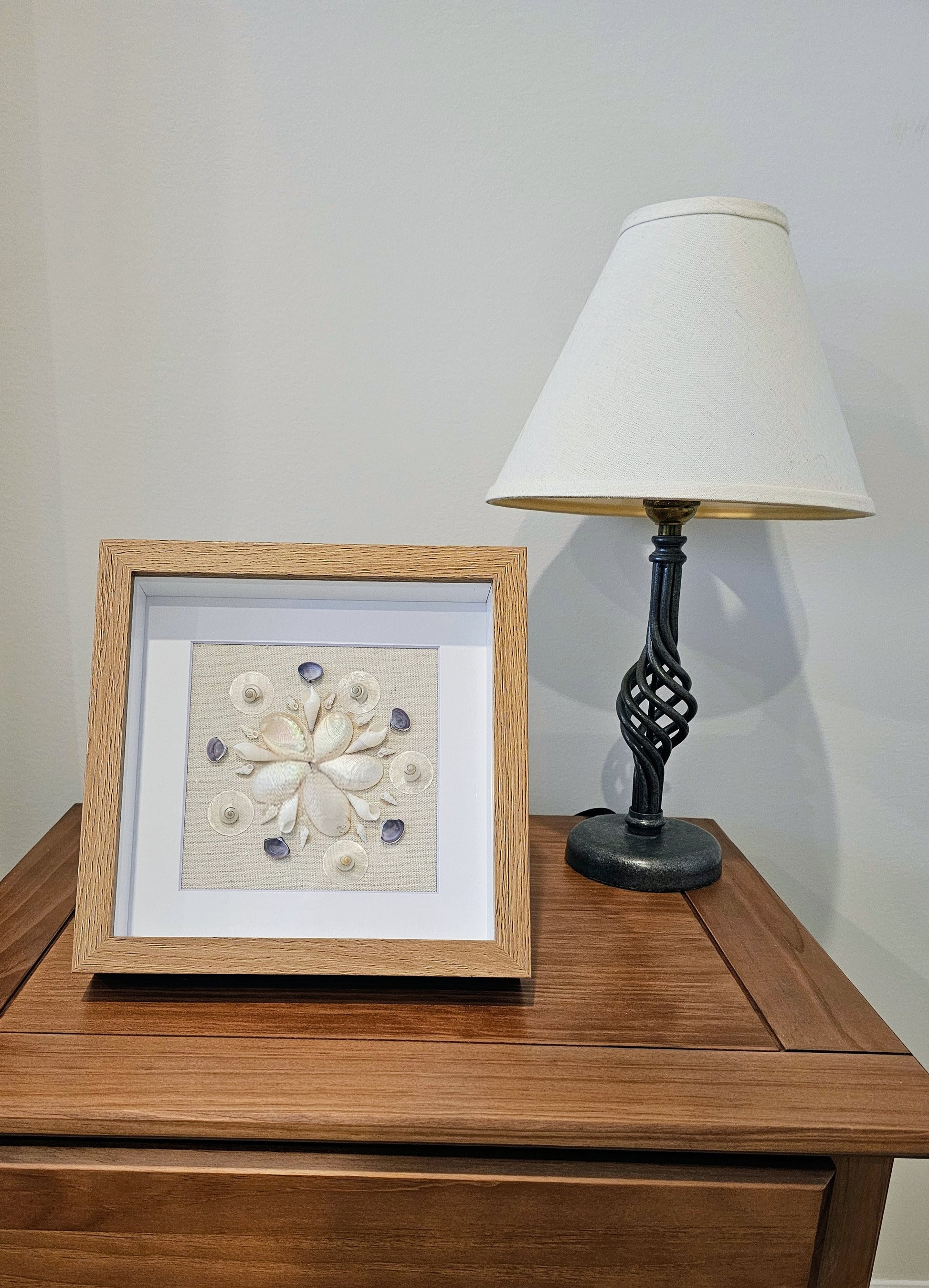Purple Cay Cay & Pearled Abalone on Linen 9x9
