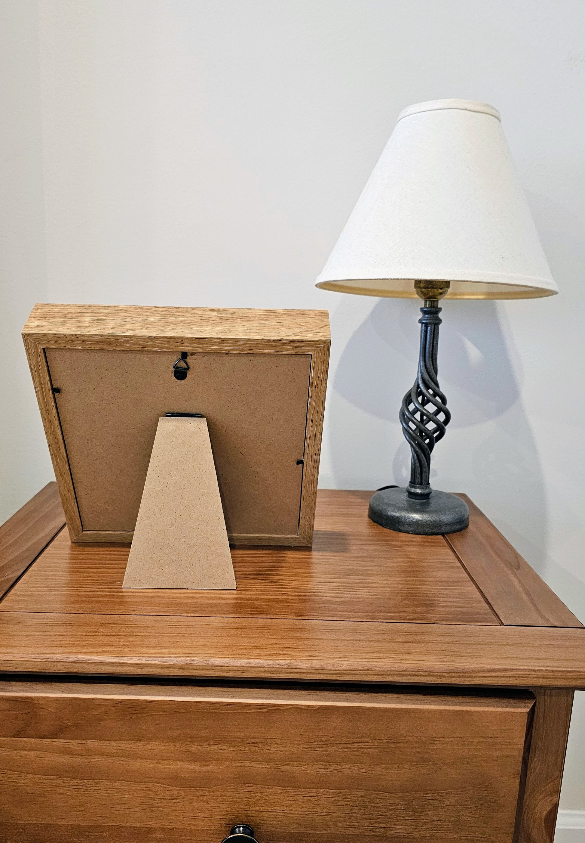 Actual artwork is 5.5x5.5 in a matted 9x9 wooden frame