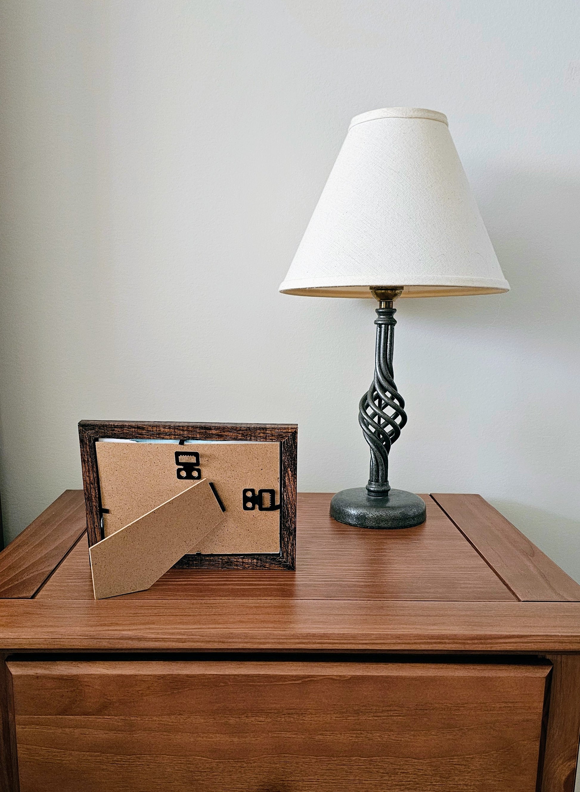 Actual artwork 3x4.85 in a 4.85x6.85 matted wooden frame with linen.
