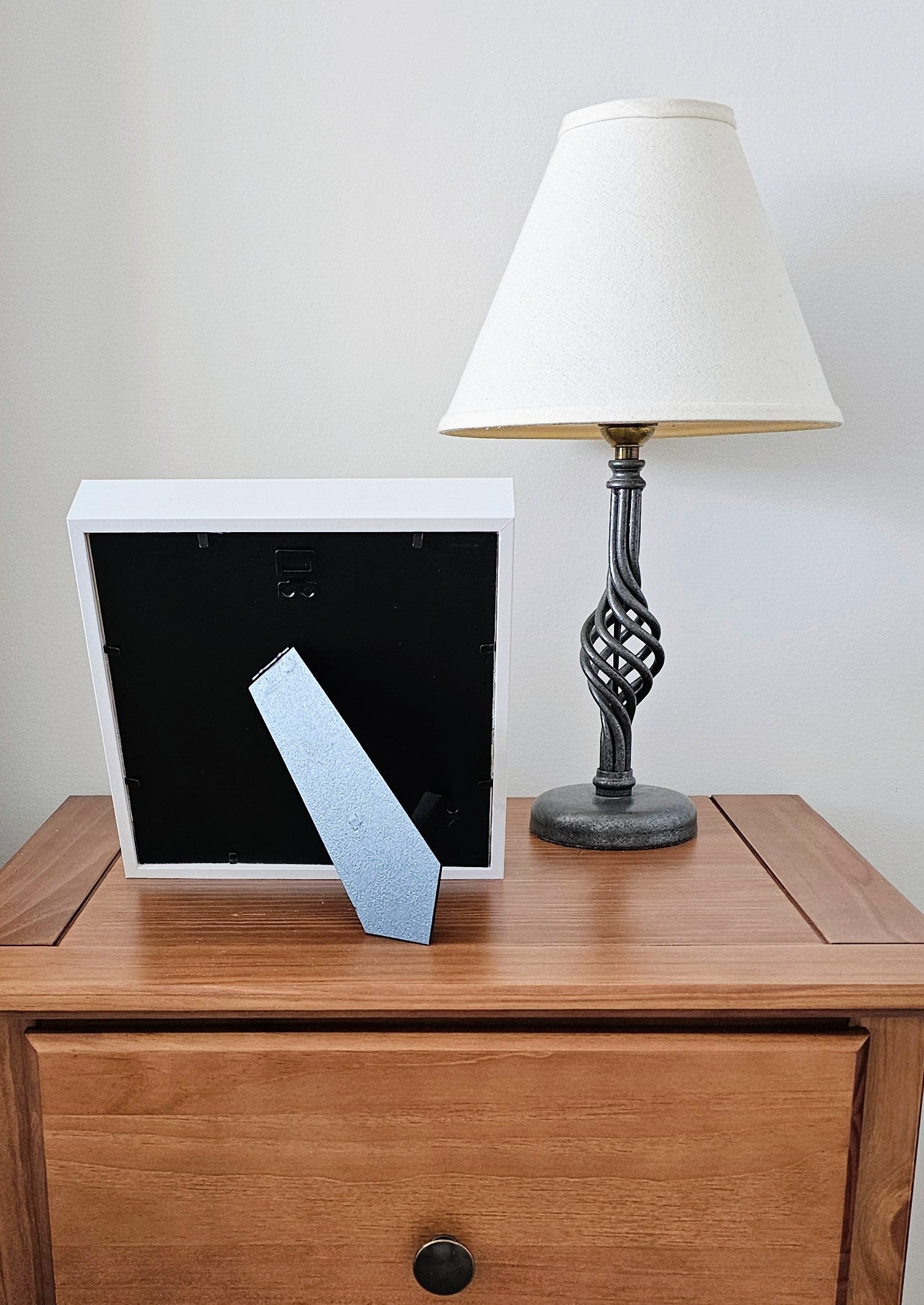 Actual artwork 7.5x7.5 in a 8.5x8.5 unmatted white wooden frame