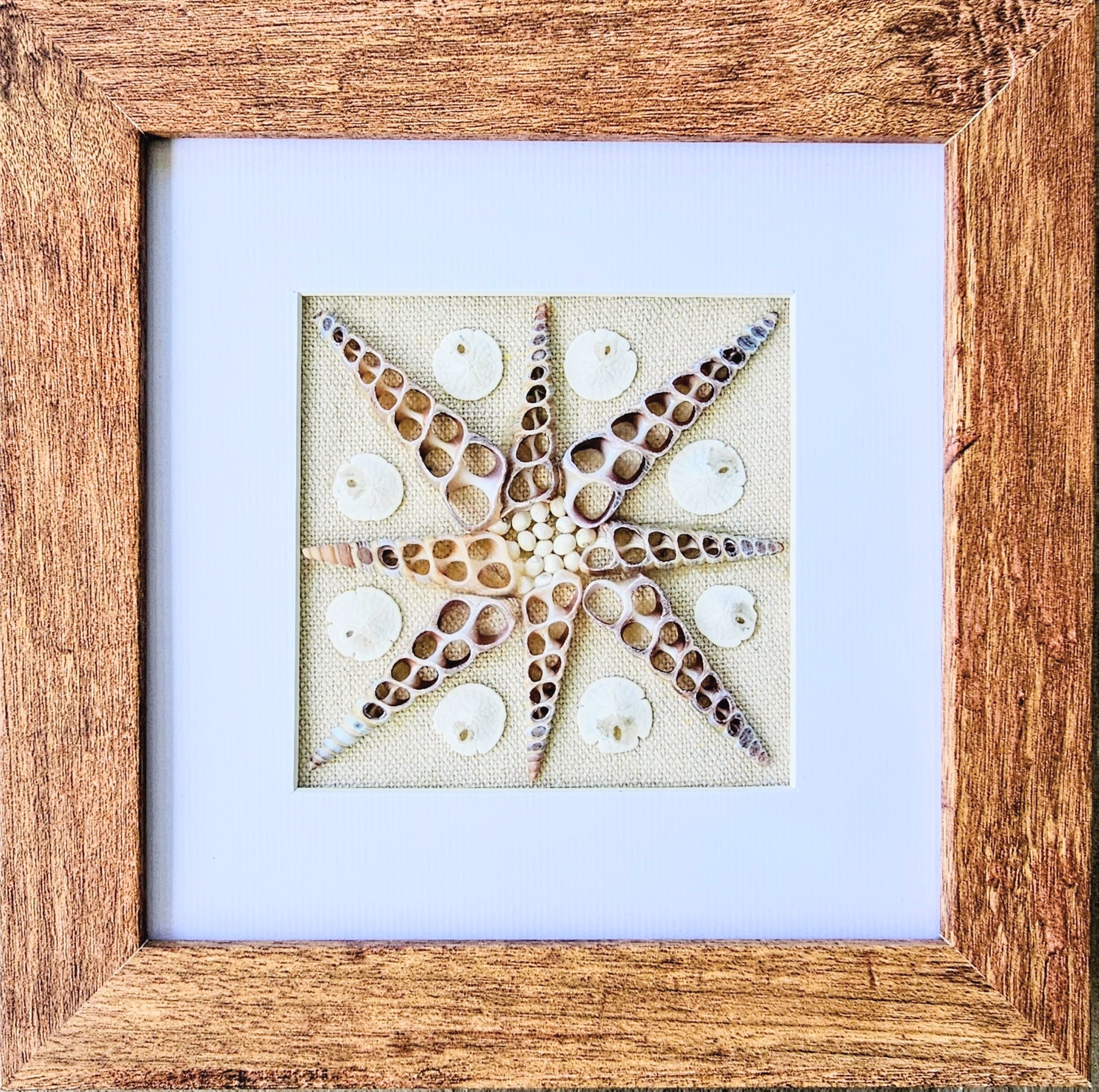 Sliced Turretella & Mini Sand Dollars on Linen 7.5x7.5